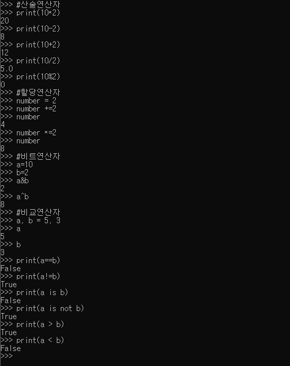 - 연산의 결과값이 숫자가 아닐경우 True, False로 결과 값을 리턴