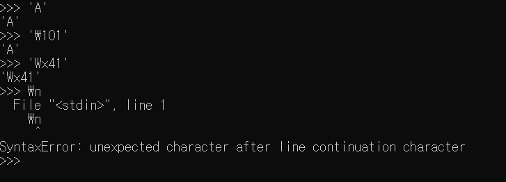 - 역슬래시가 단일 인용이나 더블 인용 부호 앞에 삽입 되면 문자 자체를 의미함