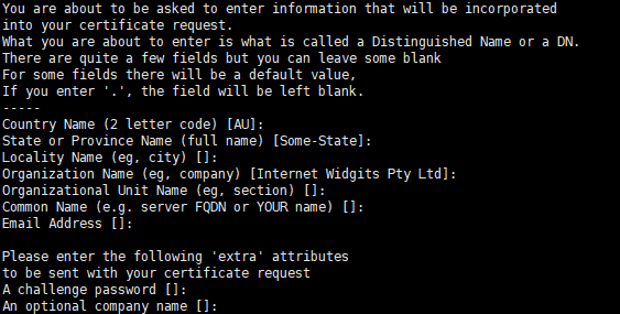 csr 파일 생성시 개인 정보 입력할 필요는 없기 때문에 Enter 입력