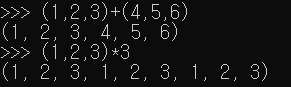 - (1,2,3)+(4,5,6)를 지정하게 되면 (1,2,3,4,5,6)이 되어 리턴