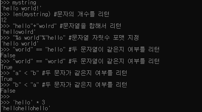 - 문자열은 +,*를 이용하여 문자열 합치기, 반복되는 횟수를 각각 지정함