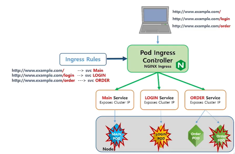 - HTTP나 HTTPS를 통해 클러스터 내부의 서비스를 외부로 노출