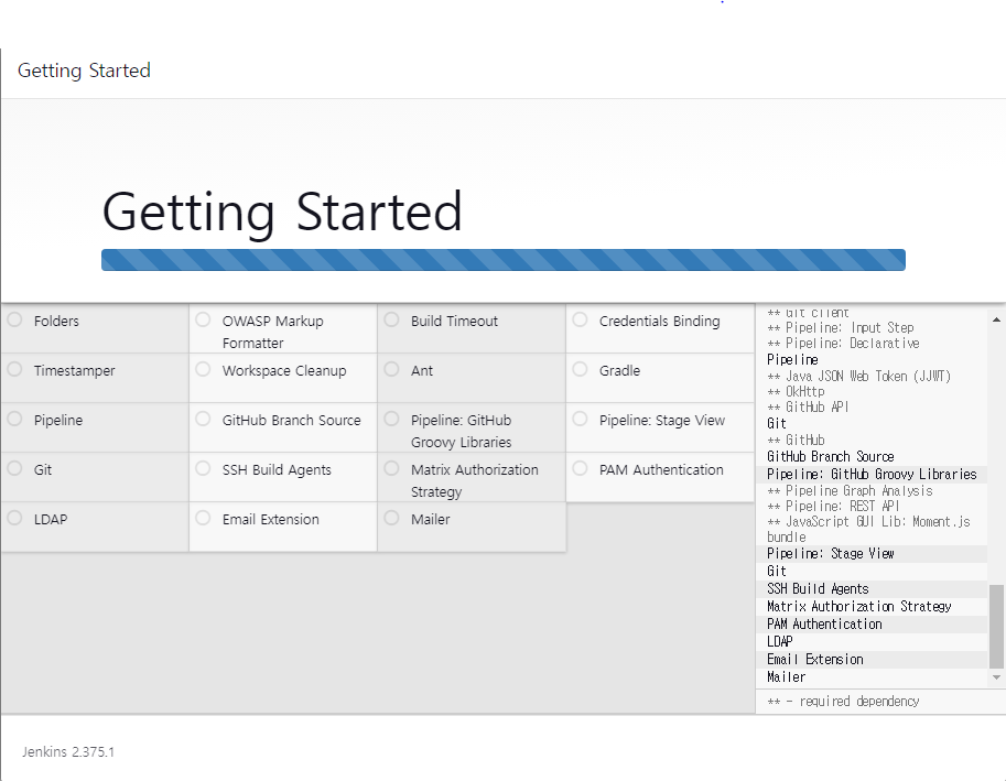 Install suggested plugins 클릭하여 기본 플러그인 다운로드