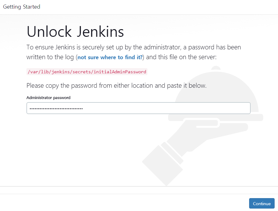 /var/lib/jenkins/secrets/initialAdminPassword 파일에서 Administrator 패스워드 확인 후 입력